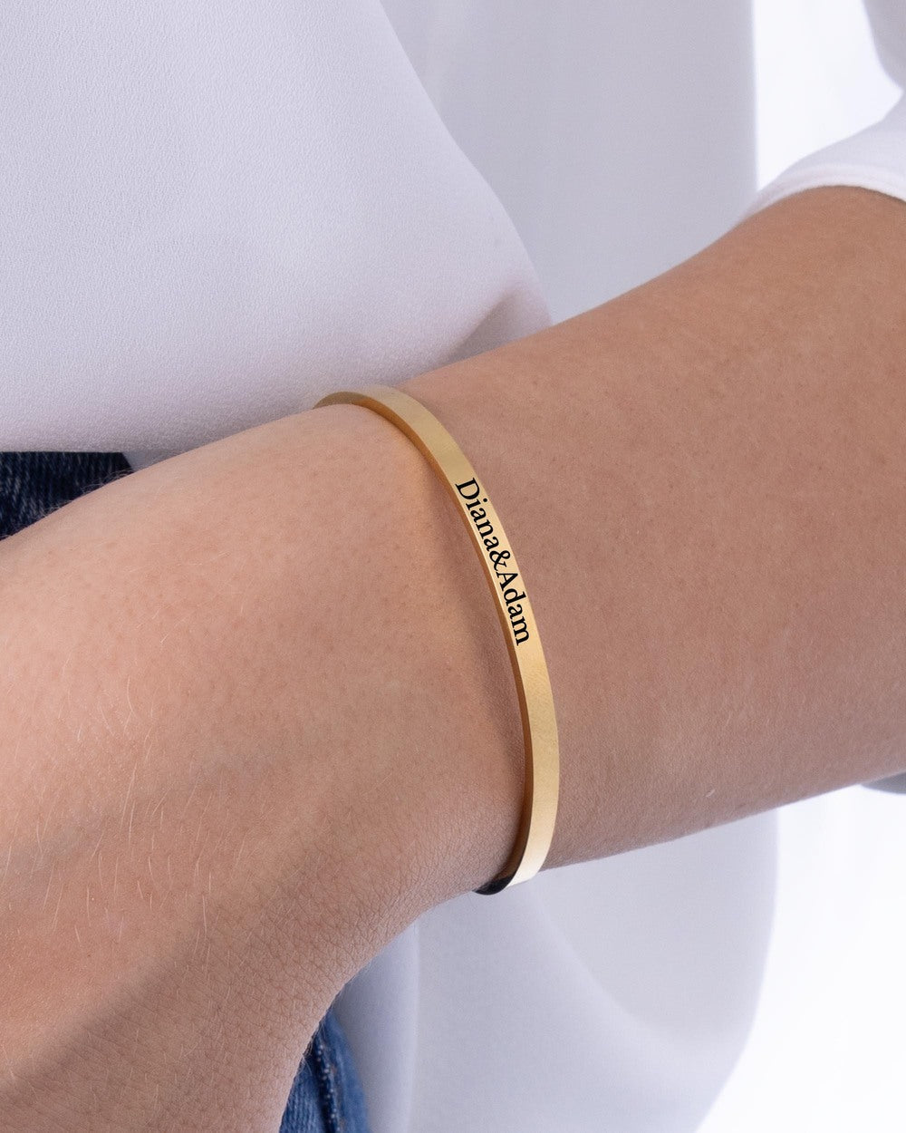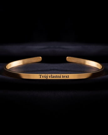 Minimalistický náramek z chirurgické oceli s 18K pozlacením. Vytvořte jedinečný dárek personalizovaný textem, který symbolizuje vaše pouto.
