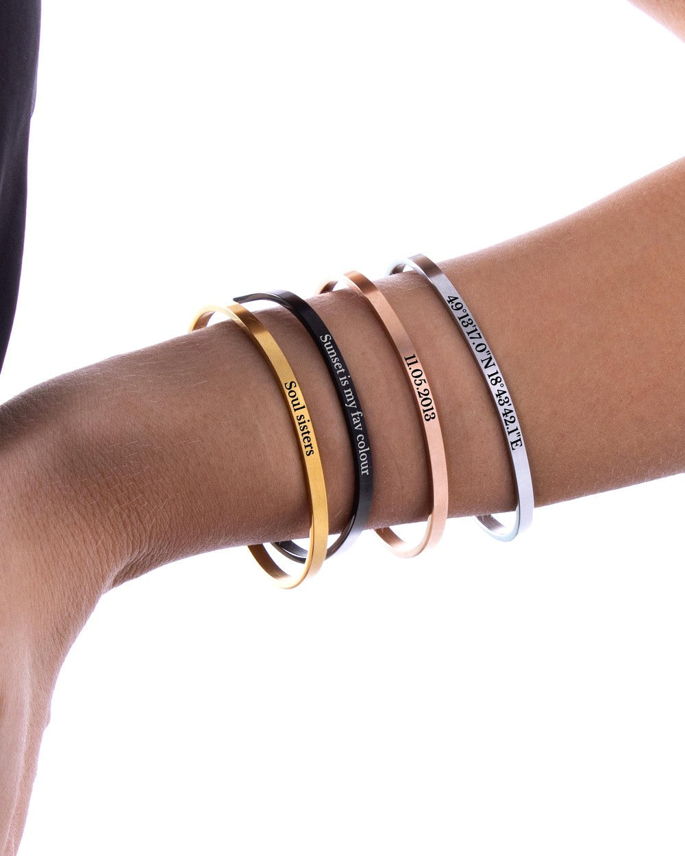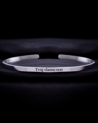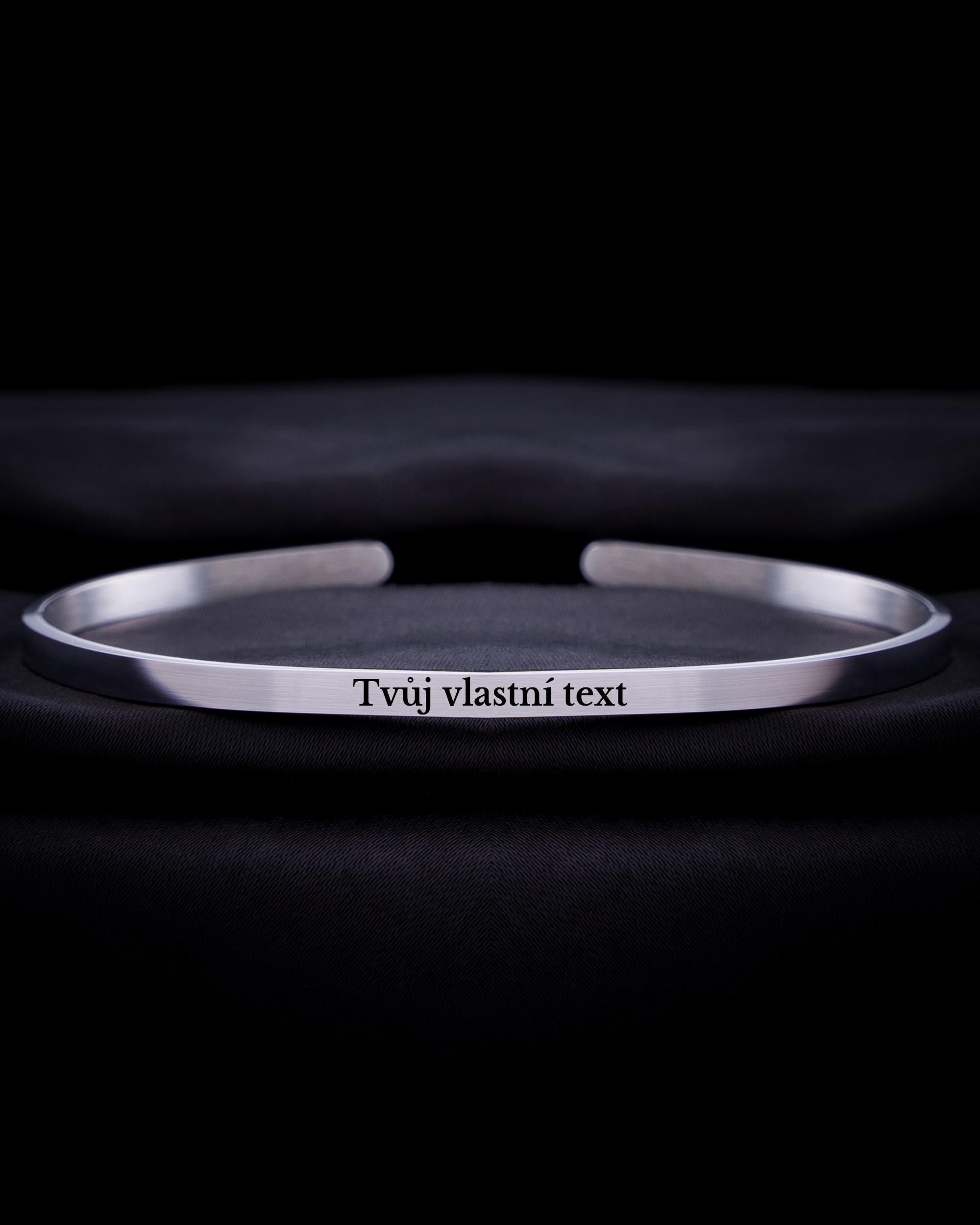 Minimalistický náramek z chirurgické oceli – ideální jako osobní dárek s vlastním textem.