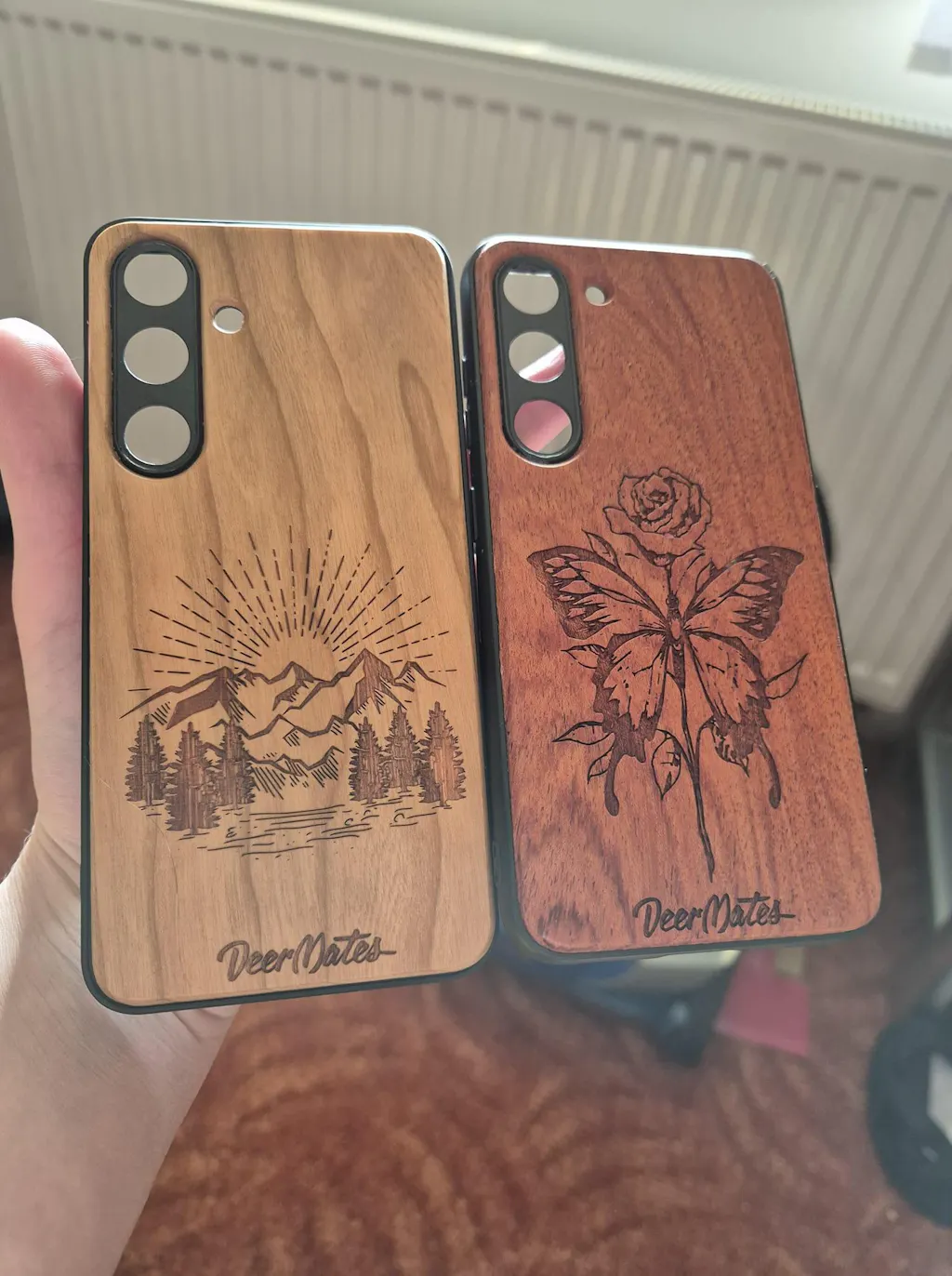 Vyberte si ze 3 druhů skutečného dřeva a z více než 70 gravírovaných designů nebo spojení barevné pryskyřice s pravým dřevem a dodejte svému telefonu jedinečný vzhled.